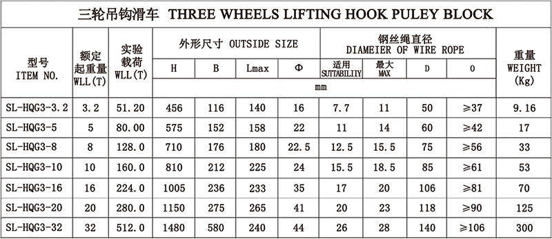 三轮吊钩滑车